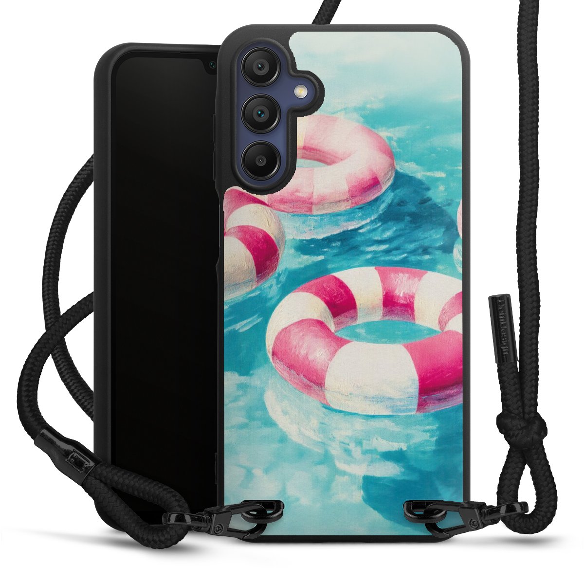 We use the solid direct print process for this phone case, which is why the print area only covers the back and the edge remains unprinted. The case to wear around your neck can be ordered unprinted, fully printed, or partially printed. For your design, either choose one of our exclusive shop motifs or get creative and create your own design, for example with photos and overlays. Design your own personal trend accessory and make an individual statement on the streets!