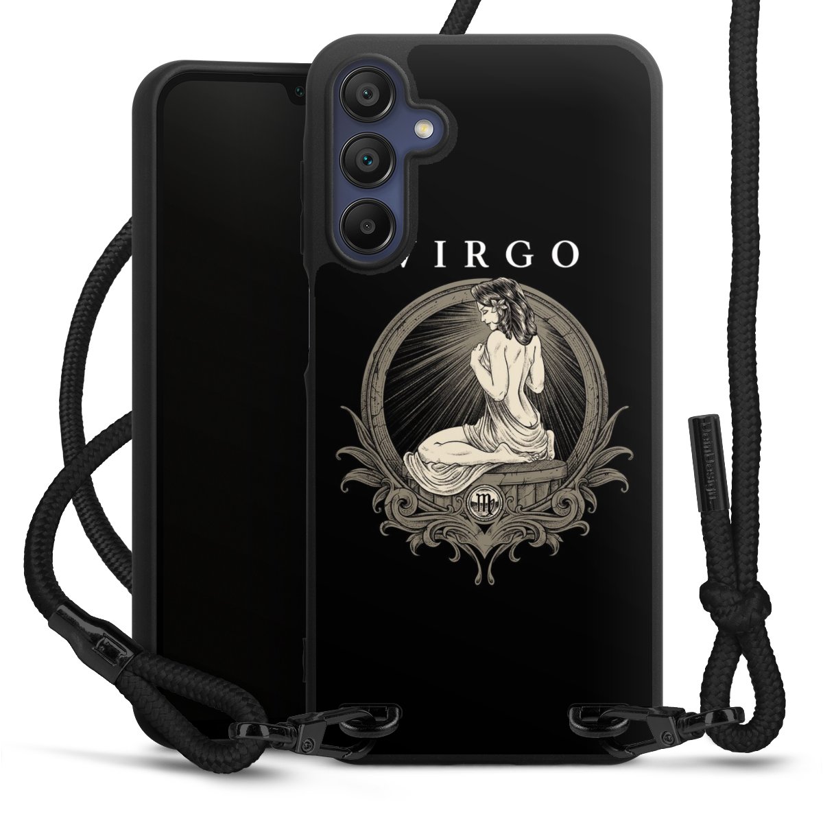 The matt black silicone case is made of flexible TPU (thermoplastic polyurethane) and offers robust protection. The durable, unbreakable material makes the cover flexible and dimensionally stable at the same time. The matte surface makes your design stand out more and is less susceptible to fingerprints and dirt. The stylish trend accessory fits comfortably in the hand and is perfectly complemented by the fabric (polyester) mobile phone strap. The braided fabric strap is approx. 1.70 metres long with a diameter of approx. 0.5 cm. Due to the special knotting technique, the length of the strap can be adjusted by simply pulling it, so that you can adapt it individually to your wishes. The practical case to wear around your neck is available with the fabric strap in black. As a little icing on the cake, we have provided the strap with a chic metal fastener in matt black. The strap is securely fastened to the case with loops made of high-quality genuine leather and press studs. The ends of the fabric strap are covered with metallic end caps and thus protected from fraying.