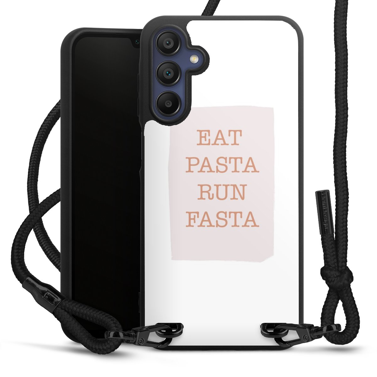 Pure Black: Phone case, fabric strap and metal details in stylish matt black.