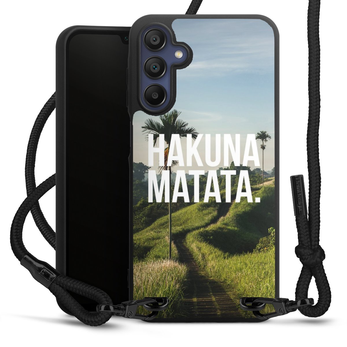 The matt black silicone case is made of flexible TPU (thermoplastic polyurethane) and offers robust protection. The durable, unbreakable material makes the cover flexible and dimensionally stable at the same time. The matte surface makes your design stand out more and is less susceptible to fingerprints and dirt. The stylish trend accessory fits comfortably in the hand and is perfectly complemented by the fabric (polyester) mobile phone strap. The braided fabric strap is approx. 1.70 metres long with a diameter of approx. 0.5 cm. Due to the special knotting technique, the length of the strap can be adjusted by simply pulling it, so that you can adapt it individually to your wishes. The practical case to wear around your neck is available with the fabric strap in black. As a little icing on the cake, we have provided the strap with a chic metal fastener in matt black. The strap is securely fastened to the case with loops made of high-quality genuine leather and press studs. The ends of the fabric strap are covered with metallic end caps and thus protected from fraying.