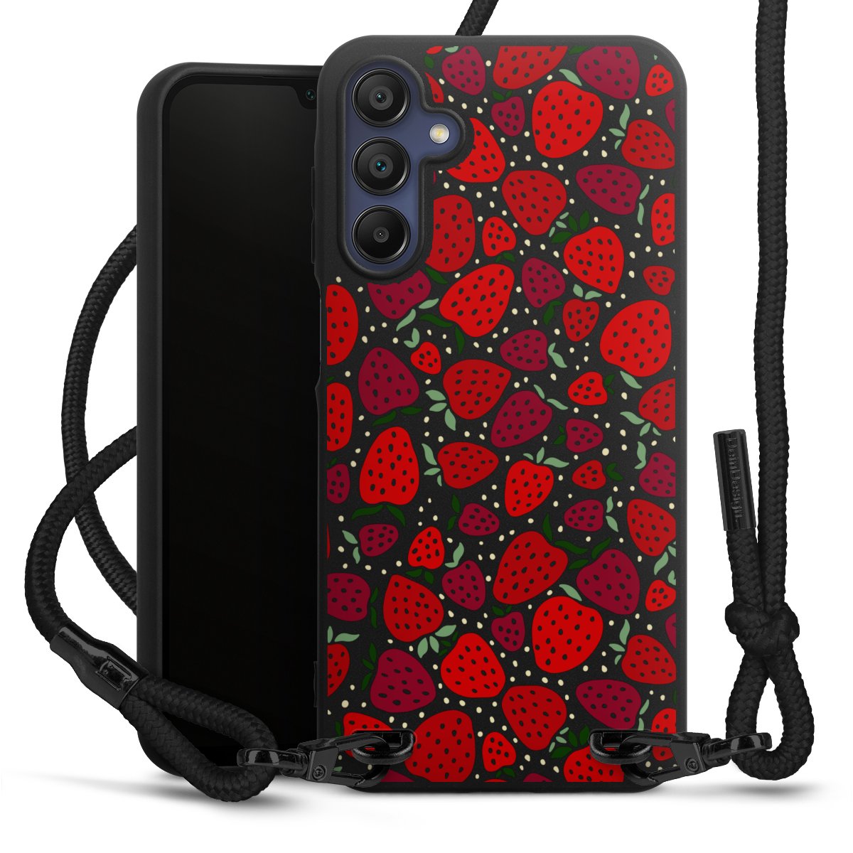 Pure Black: Phone case, fabric strap and metal details in stylish matt black.