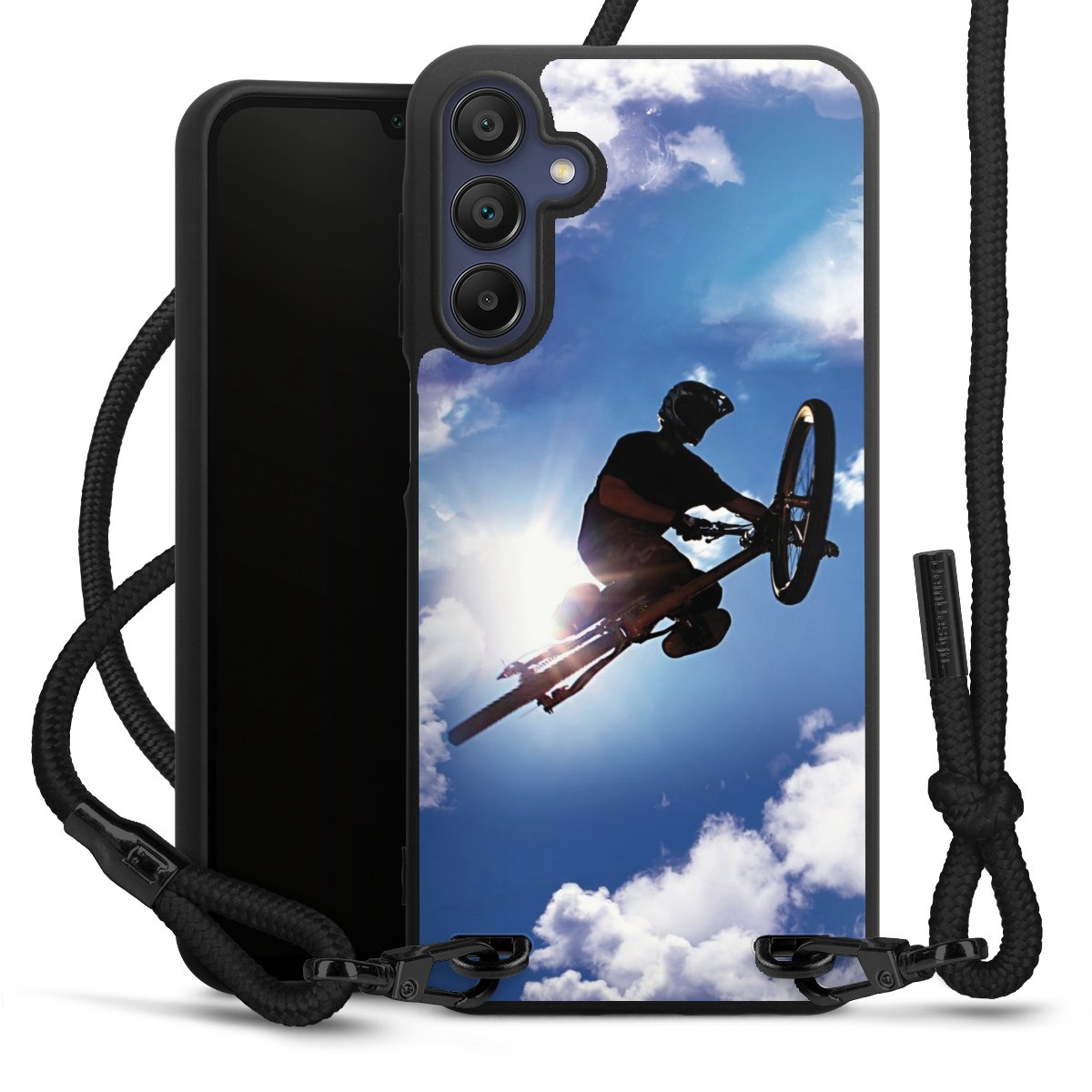 We use the solid direct print process for this phone case, which is why the print area only covers the back and the edge remains unprinted. The case to wear around your neck can be ordered unprinted, fully printed, or partially printed. For your design, either choose one of our exclusive shop motifs or get creative and create your own design, for example with photos and overlays. Design your own personal trend accessory and make an individual statement on the streets!