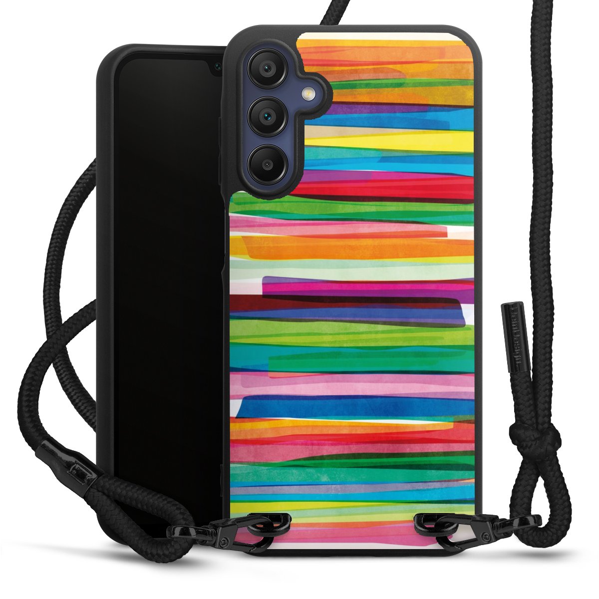 We use the solid direct print process for this phone case, which is why the print area only covers the back and the edge remains unprinted. The case to wear around your neck can be ordered unprinted, fully printed, or partially printed. For your design, either choose one of our exclusive shop motifs or get creative and create your own design, for example with photos and overlays. Design your own personal trend accessory and make an individual statement on the streets!