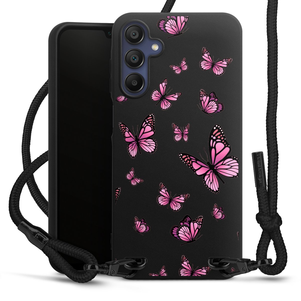 Pure Black: Phone case, fabric strap and metal details in stylish matt black.