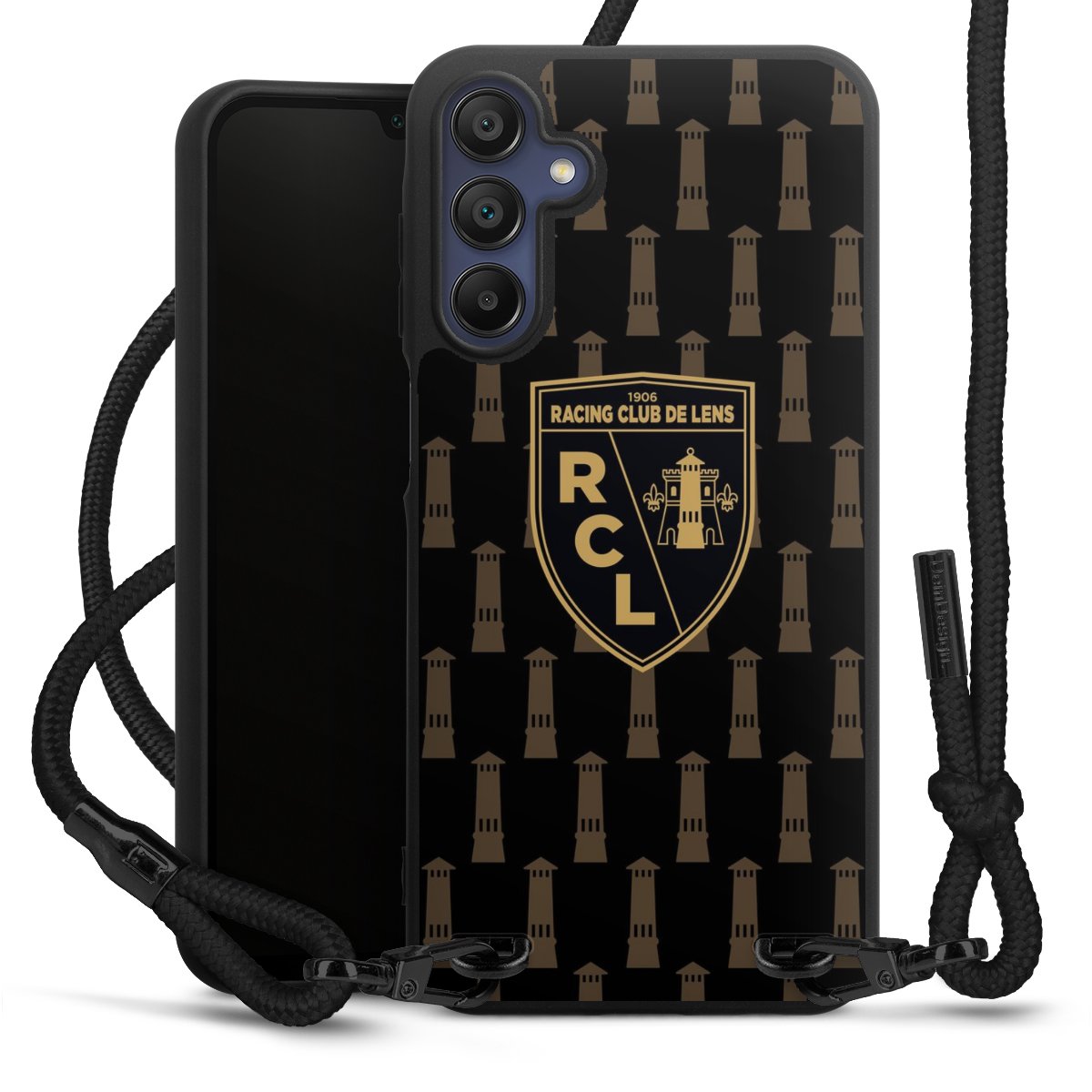 Pure Black: Phone case, fabric strap and metal details in stylish matt black.