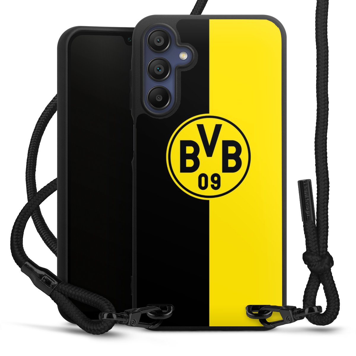 The matt black silicone case is made of flexible TPU (thermoplastic polyurethane) and offers robust protection. The durable, unbreakable material makes the cover flexible and dimensionally stable at the same time. The matte surface makes your design stand out more and is less susceptible to fingerprints and dirt. The stylish trend accessory fits comfortably in the hand and is perfectly complemented by the fabric (polyester) mobile phone strap. The braided fabric strap is approx. 1.70 metres long with a diameter of approx. 0.5 cm. Due to the special knotting technique, the length of the strap can be adjusted by simply pulling it, so that you can adapt it individually to your wishes. The practical case to wear around your neck is available with the fabric strap in black. As a little icing on the cake, we have provided the strap with a chic metal fastener in matt black. The strap is securely fastened to the case with loops made of high-quality genuine leather and press studs. The ends of the fabric strap are covered with metallic end caps and thus protected from fraying.
