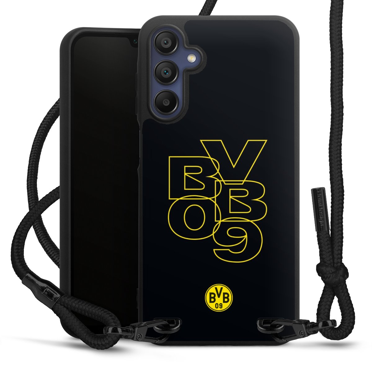The matt black silicone case is made of flexible TPU (thermoplastic polyurethane) and offers robust protection. The durable, unbreakable material makes the cover flexible and dimensionally stable at the same time. The matte surface makes your design stand out more and is less susceptible to fingerprints and dirt. The stylish trend accessory fits comfortably in the hand and is perfectly complemented by the fabric (polyester) mobile phone strap. The braided fabric strap is approx. 1.70 metres long with a diameter of approx. 0.5 cm. Due to the special knotting technique, the length of the strap can be adjusted by simply pulling it, so that you can adapt it individually to your wishes. The practical case to wear around your neck is available with the fabric strap in black. As a little icing on the cake, we have provided the strap with a chic metal fastener in matt black. The strap is securely fastened to the case with loops made of high-quality genuine leather and press studs. The ends of the fabric strap are covered with metallic end caps and thus protected from fraying.