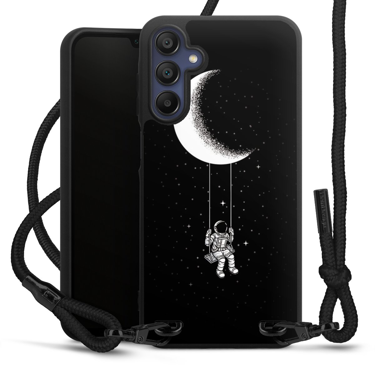 Pure Black: Phone case, fabric strap and metal details in stylish matt black.