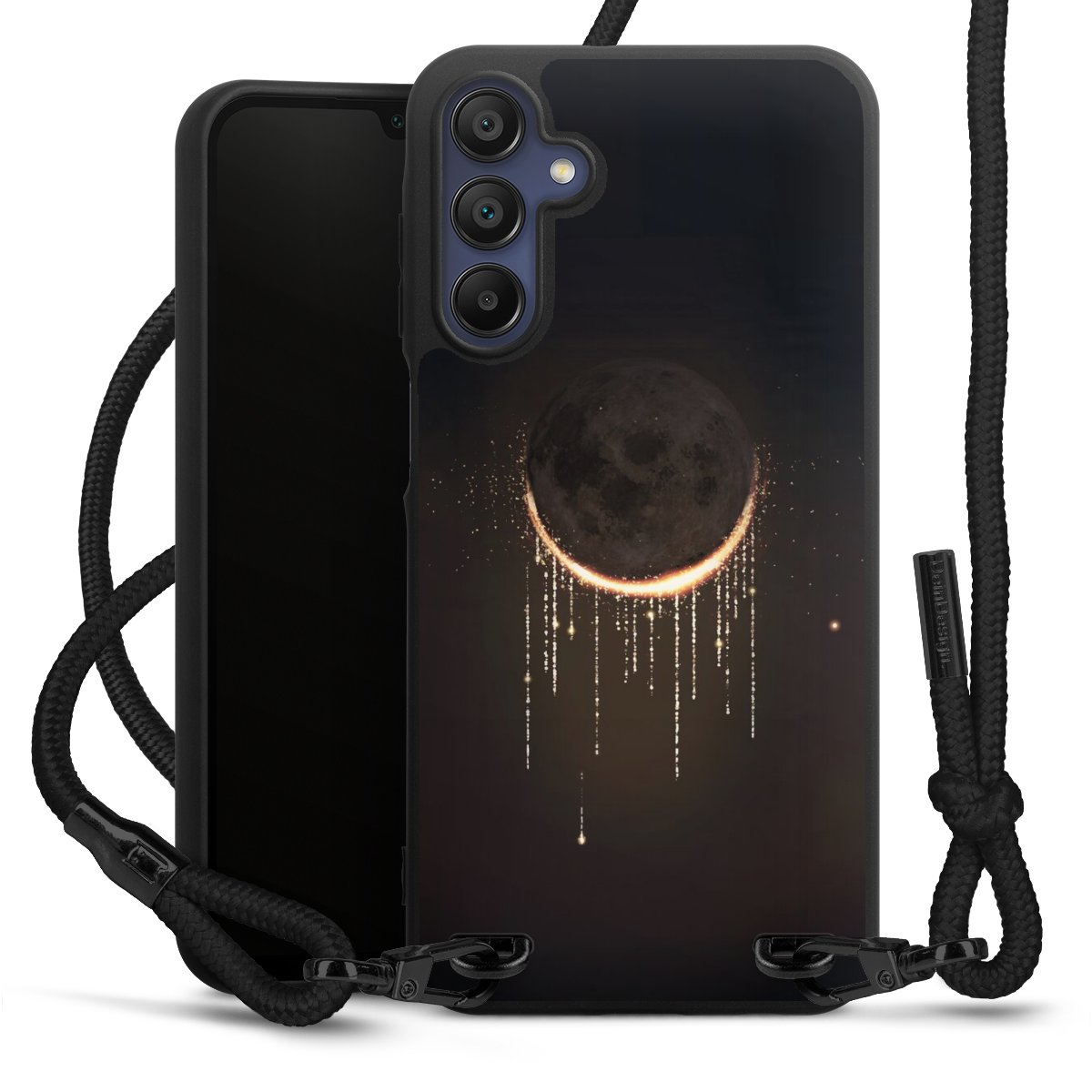The matt black silicone case is made of flexible TPU (thermoplastic polyurethane) and offers robust protection. The durable, unbreakable material makes the cover flexible and dimensionally stable at the same time. The matte surface makes your design stand out more and is less susceptible to fingerprints and dirt. The stylish trend accessory fits comfortably in the hand and is perfectly complemented by the fabric (polyester) mobile phone strap. The braided fabric strap is approx. 1.70 metres long with a diameter of approx. 0.5 cm. Due to the special knotting technique, the length of the strap can be adjusted by simply pulling it, so that you can adapt it individually to your wishes. The practical case to wear around your neck is available with the fabric strap in black. As a little icing on the cake, we have provided the strap with a chic metal fastener in matt black. The strap is securely fastened to the case with loops made of high-quality genuine leather and press studs. The ends of the fabric strap are covered with metallic end caps and thus protected from fraying.
