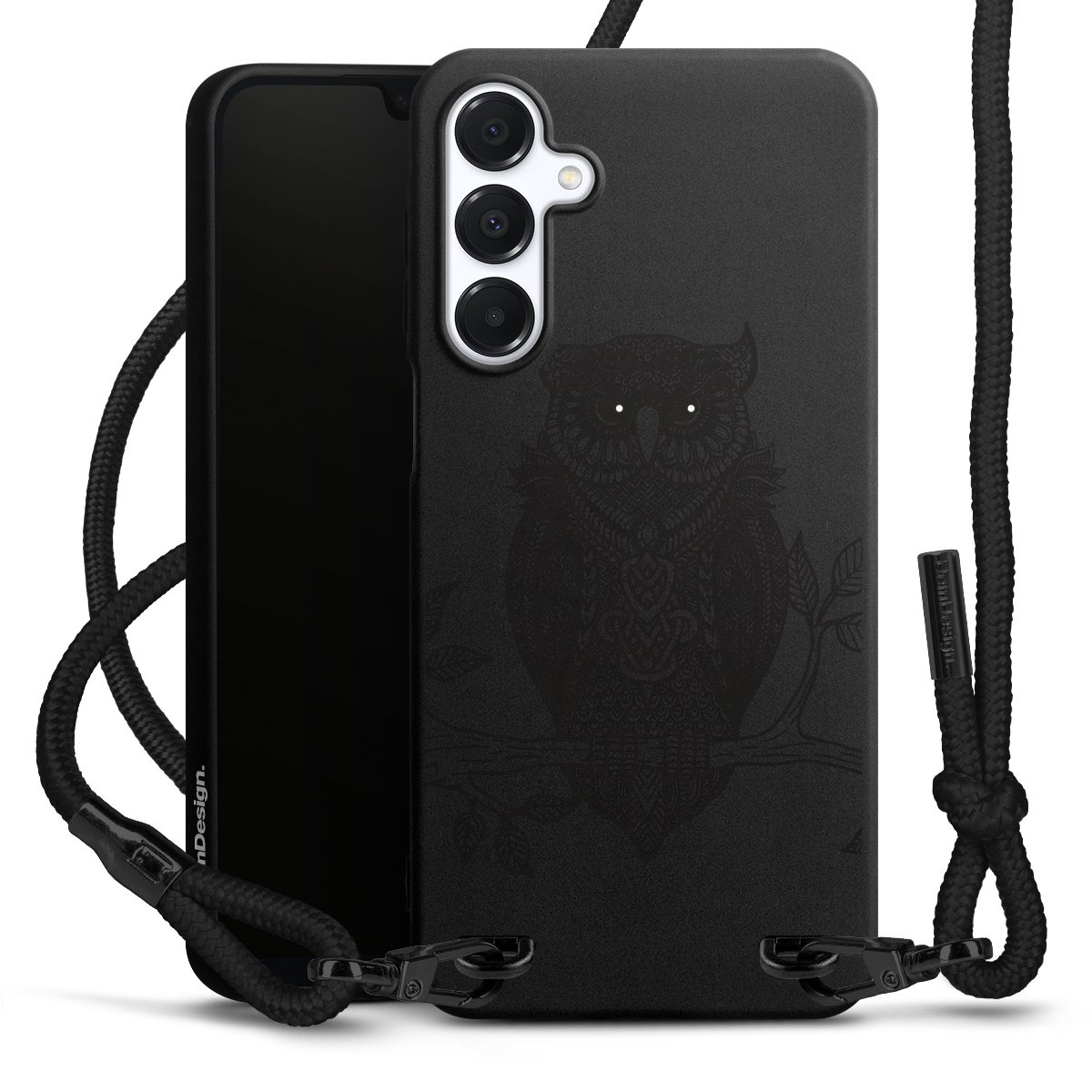 Pure Black: Phone case, fabric strap and metal details in stylish matt black.