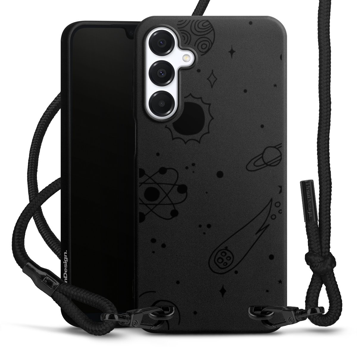 Pure Black: Phone case, fabric strap and metal details in stylish matt black.