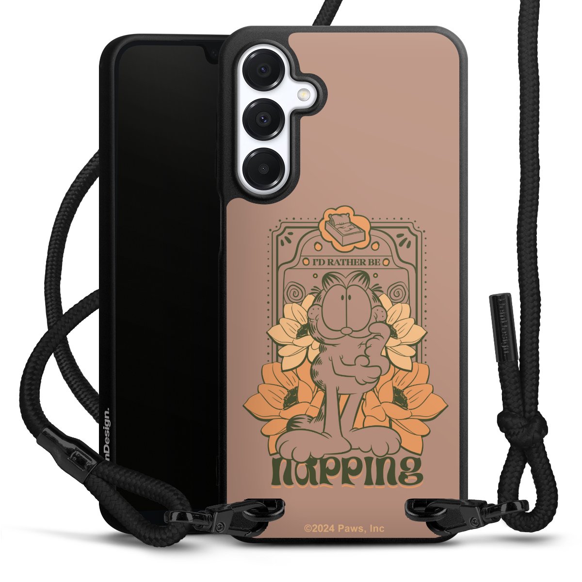 The matt black silicone case is made of flexible TPU (thermoplastic polyurethane) and offers robust protection. The durable, unbreakable material makes the cover flexible and dimensionally stable at the same time. The matte surface makes your design stand out more and is less susceptible to fingerprints and dirt. The stylish trend accessory fits comfortably in the hand and is perfectly complemented by the fabric (polyester) mobile phone strap. The braided fabric strap is approx. 1.70 metres long with a diameter of approx. 0.5 cm. Due to the special knotting technique, the length of the strap can be adjusted by simply pulling it, so that you can adapt it individually to your wishes. The practical case to wear around your neck is available with the fabric strap in black. As a little icing on the cake, we have provided the strap with a chic metal fastener in matt black. The strap is securely fastened to the case with loops made of high-quality genuine leather and press studs. The ends of the fabric strap are covered with metallic end caps and thus protected from fraying.