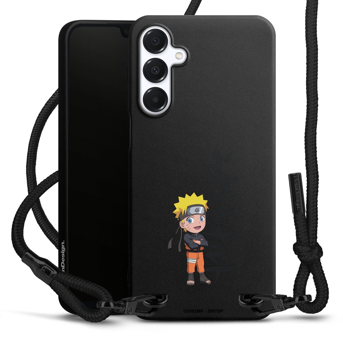 The matt black silicone case is made of flexible TPU (thermoplastic polyurethane) and offers robust protection. The durable, unbreakable material makes the cover flexible and dimensionally stable at the same time. The matte surface makes your design stand out more and is less susceptible to fingerprints and dirt. The stylish trend accessory fits comfortably in the hand and is perfectly complemented by the fabric (polyester) mobile phone strap. The braided fabric strap is approx. 1.70 metres long with a diameter of approx. 0.5 cm. Due to the special knotting technique, the length of the strap can be adjusted by simply pulling it, so that you can adapt it individually to your wishes. The practical case to wear around your neck is available with the fabric strap in black. As a little icing on the cake, we have provided the strap with a chic metal fastener in matt black. The strap is securely fastened to the case with loops made of high-quality genuine leather and press studs. The ends of the fabric strap are covered with metallic end caps and thus protected from fraying.