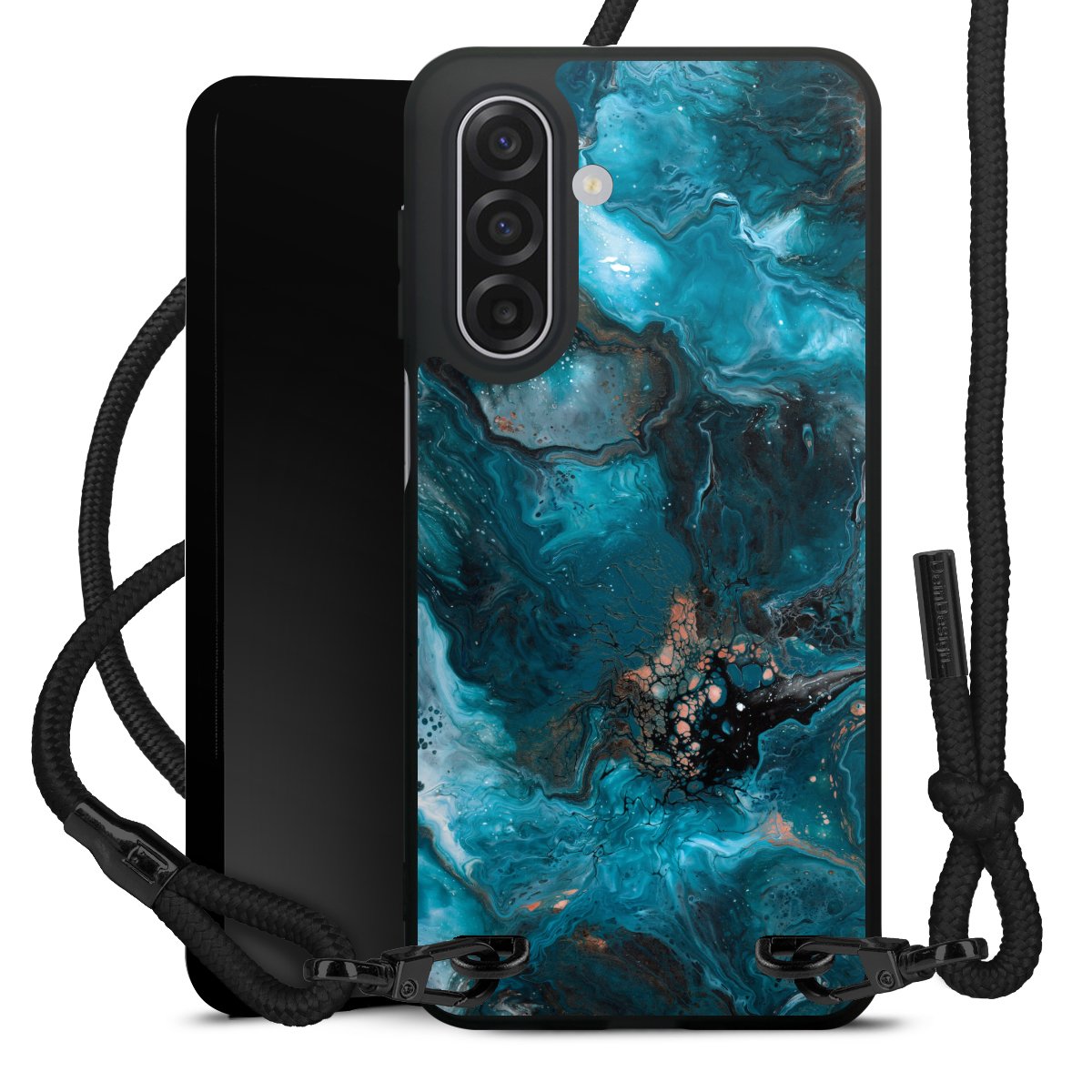 The matt black silicone case is made of flexible TPU (thermoplastic polyurethane) and offers robust protection. The durable, unbreakable material makes the cover flexible and dimensionally stable at the same time. The matte surface makes your design stand out more and is less susceptible to fingerprints and dirt. The stylish trend accessory fits comfortably in the hand and is perfectly complemented by the fabric (polyester) mobile phone strap. The braided fabric strap is approx. 1.70 metres long with a diameter of approx. 0.5 cm. Due to the special knotting technique, the length of the strap can be adjusted by simply pulling it, so that you can adapt it individually to your wishes. The practical case to wear around your neck is available with the fabric strap in black. As a little icing on the cake, we have provided the strap with a chic metal fastener in matt black. The strap is securely fastened to the case with loops made of high-quality genuine leather and press studs. The ends of the fabric strap are covered with metallic end caps and thus protected from fraying.