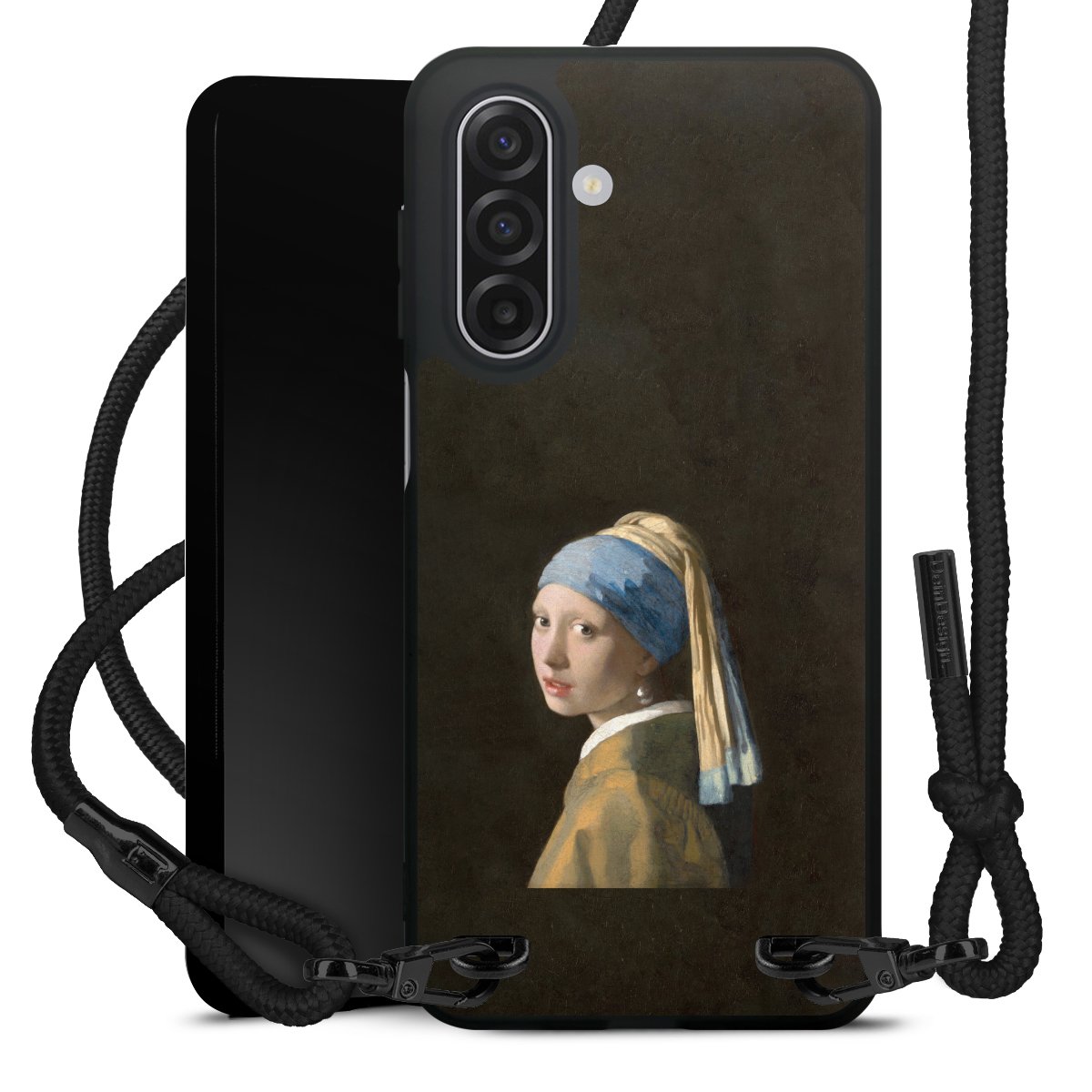 The matt black silicone case is made of flexible TPU (thermoplastic polyurethane) and offers robust protection. The durable, unbreakable material makes the cover flexible and dimensionally stable at the same time. The matte surface makes your design stand out more and is less susceptible to fingerprints and dirt. The stylish trend accessory fits comfortably in the hand and is perfectly complemented by the fabric (polyester) mobile phone strap. The braided fabric strap is approx. 1.70 metres long with a diameter of approx. 0.5 cm. Due to the special knotting technique, the length of the strap can be adjusted by simply pulling it, so that you can adapt it individually to your wishes. The practical case to wear around your neck is available with the fabric strap in black. As a little icing on the cake, we have provided the strap with a chic metal fastener in matt black. The strap is securely fastened to the case with loops made of high-quality genuine leather and press studs. The ends of the fabric strap are covered with metallic end caps and thus protected from fraying.