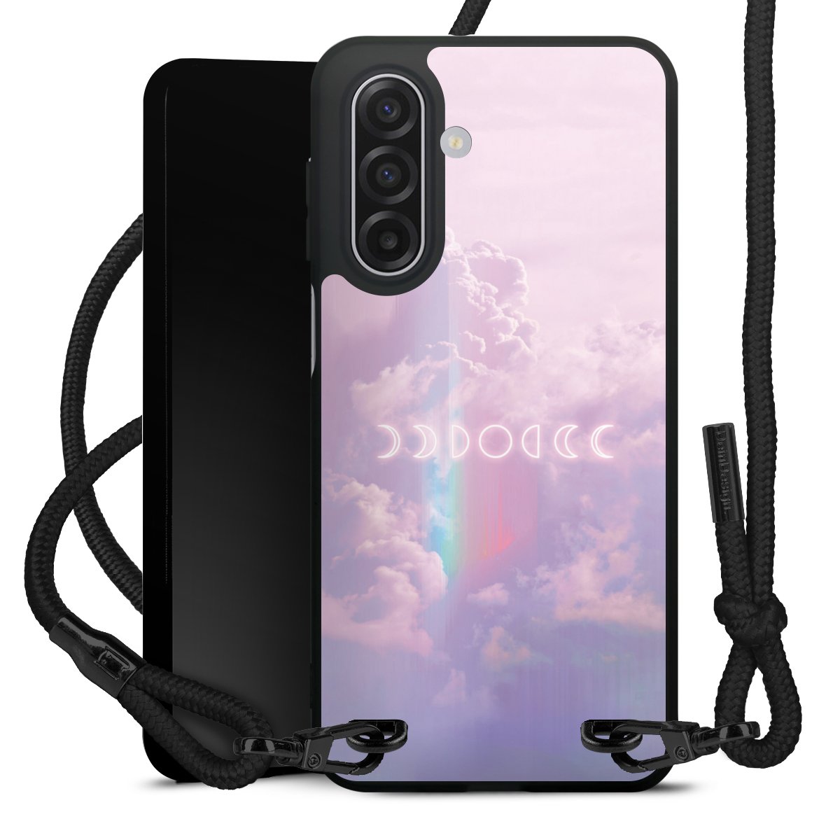 We use the solid direct print process for this phone case, which is why the print area only covers the back and the edge remains unprinted. The case to wear around your neck can be ordered unprinted, fully printed, or partially printed. For your design, either choose one of our exclusive shop motifs or get creative and create your own design, for example with photos and overlays. Design your own personal trend accessory and make an individual statement on the streets!