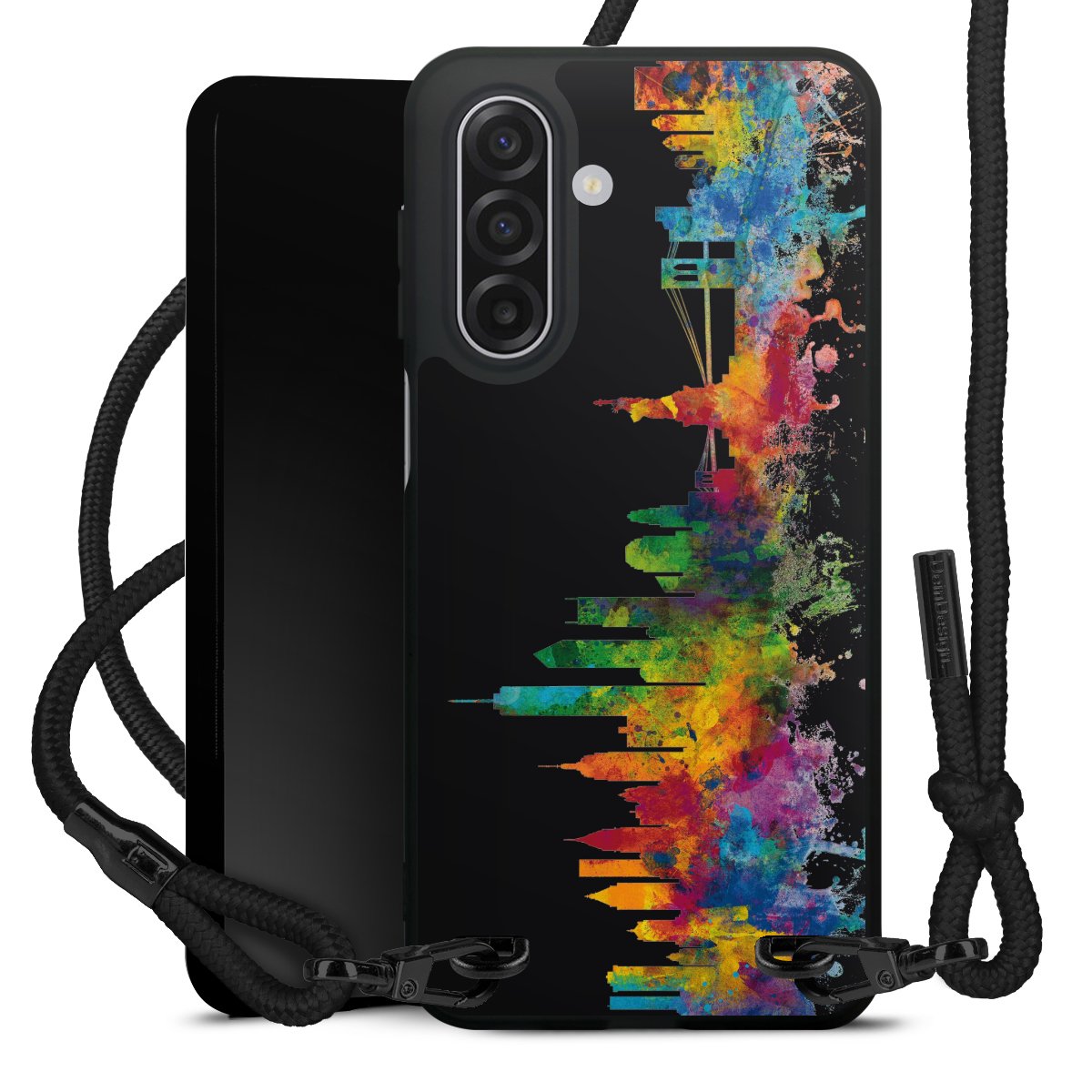We use the solid direct print process for this phone case, which is why the print area only covers the back and the edge remains unprinted. The case to wear around your neck can be ordered unprinted, fully printed, or partially printed. For your design, either choose one of our exclusive shop motifs or get creative and create your own design, for example with photos and overlays. Design your own personal trend accessory and make an individual statement on the streets!