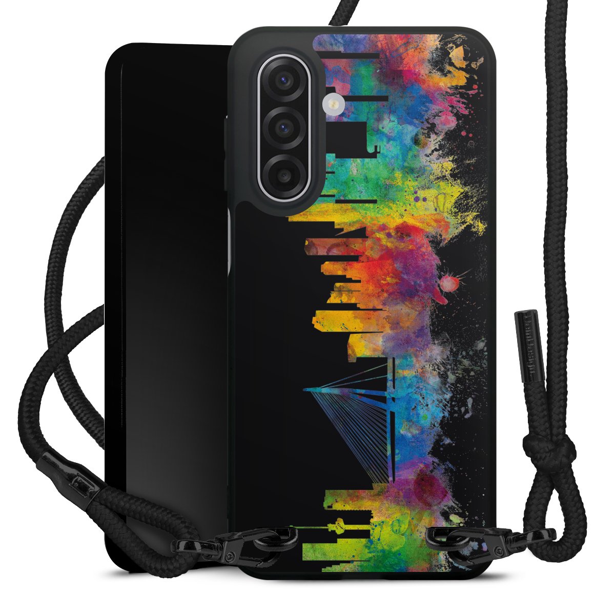 We use the solid direct print process for this phone case, which is why the print area only covers the back and the edge remains unprinted. The case to wear around your neck can be ordered unprinted, fully printed, or partially printed. For your design, either choose one of our exclusive shop motifs or get creative and create your own design, for example with photos and overlays. Design your own personal trend accessory and make an individual statement on the streets!