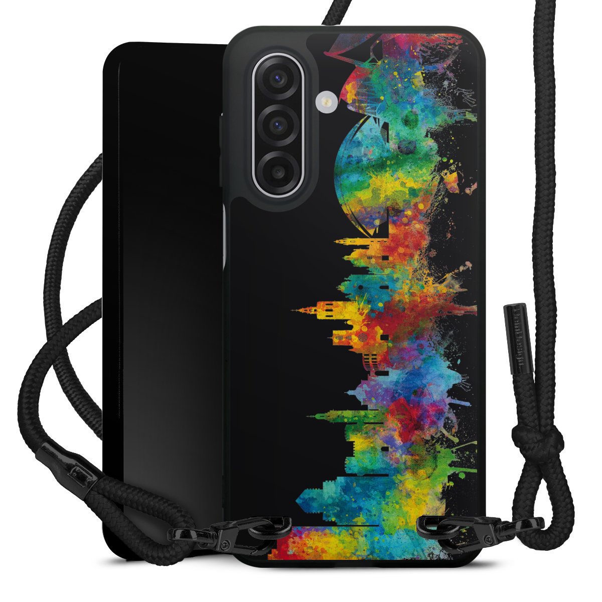 We use the solid direct print process for this phone case, which is why the print area only covers the back and the edge remains unprinted. The case to wear around your neck can be ordered unprinted, fully printed, or partially printed. For your design, either choose one of our exclusive shop motifs or get creative and create your own design, for example with photos and overlays. Design your own personal trend accessory and make an individual statement on the streets!