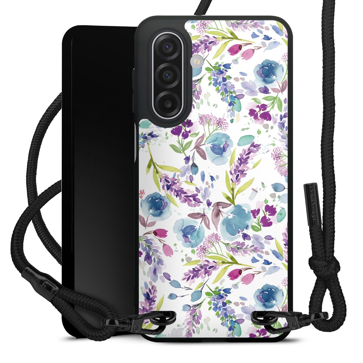 The matt black silicone case is made of flexible TPU (thermoplastic polyurethane) and offers robust protection. The durable, unbreakable material makes the cover flexible and dimensionally stable at the same time. The matte surface makes your design stand out more and is less susceptible to fingerprints and dirt. The stylish trend accessory fits comfortably in the hand and is perfectly complemented by the fabric (polyester) mobile phone strap. The braided fabric strap is approx. 1.70 metres long with a diameter of approx. 0.5 cm. Due to the special knotting technique, the length of the strap can be adjusted by simply pulling it, so that you can adapt it individually to your wishes. The practical case to wear around your neck is available with the fabric strap in black. As a little icing on the cake, we have provided the strap with a chic metal fastener in matt black. The strap is securely fastened to the case with loops made of high-quality genuine leather and press studs. The ends of the fabric strap are covered with metallic end caps and thus protected from fraying.