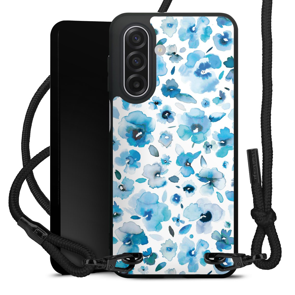 The matt black silicone case is made of flexible TPU (thermoplastic polyurethane) and offers robust protection. The durable, unbreakable material makes the cover flexible and dimensionally stable at the same time. The matte surface makes your design stand out more and is less susceptible to fingerprints and dirt. The stylish trend accessory fits comfortably in the hand and is perfectly complemented by the fabric (polyester) mobile phone strap. The braided fabric strap is approx. 1.70 metres long with a diameter of approx. 0.5 cm. Due to the special knotting technique, the length of the strap can be adjusted by simply pulling it, so that you can adapt it individually to your wishes. The practical case to wear around your neck is available with the fabric strap in black. As a little icing on the cake, we have provided the strap with a chic metal fastener in matt black. The strap is securely fastened to the case with loops made of high-quality genuine leather and press studs. The ends of the fabric strap are covered with metallic end caps and thus protected from fraying.