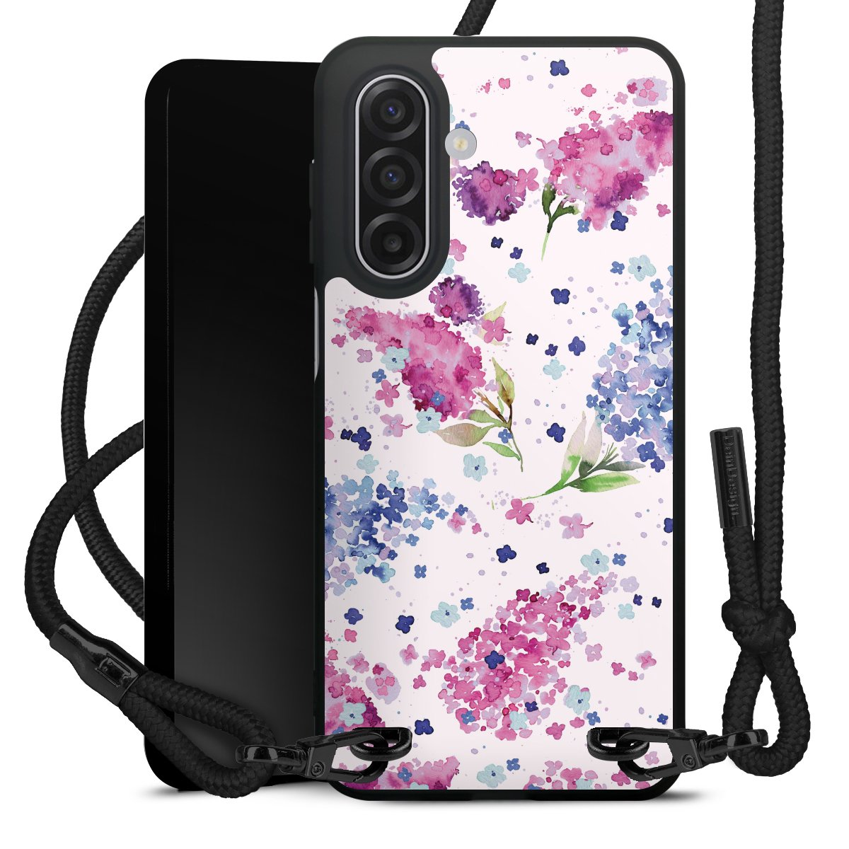 The matt black silicone case is made of flexible TPU (thermoplastic polyurethane) and offers robust protection. The durable, unbreakable material makes the cover flexible and dimensionally stable at the same time. The matte surface makes your design stand out more and is less susceptible to fingerprints and dirt. The stylish trend accessory fits comfortably in the hand and is perfectly complemented by the fabric (polyester) mobile phone strap. The braided fabric strap is approx. 1.70 metres long with a diameter of approx. 0.5 cm. Due to the special knotting technique, the length of the strap can be adjusted by simply pulling it, so that you can adapt it individually to your wishes. The practical case to wear around your neck is available with the fabric strap in black. As a little icing on the cake, we have provided the strap with a chic metal fastener in matt black. The strap is securely fastened to the case with loops made of high-quality genuine leather and press studs. The ends of the fabric strap are covered with metallic end caps and thus protected from fraying.