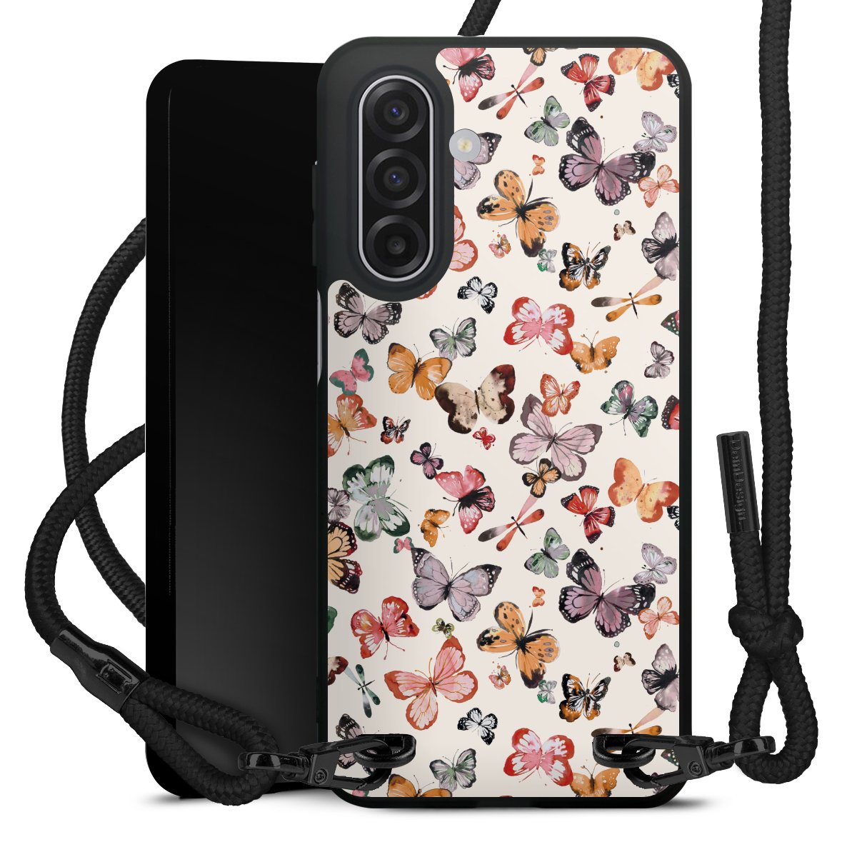 Pure Black: Phone case, fabric strap and metal details in stylish matt black.