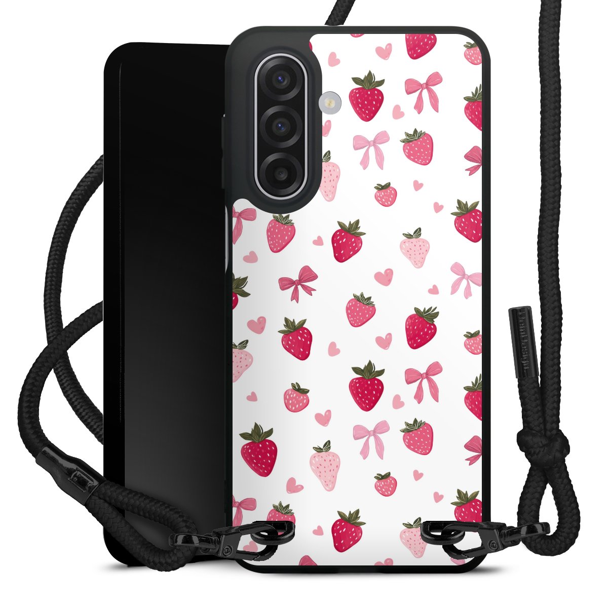 Pure Black: Phone case, fabric strap and metal details in stylish matt black.