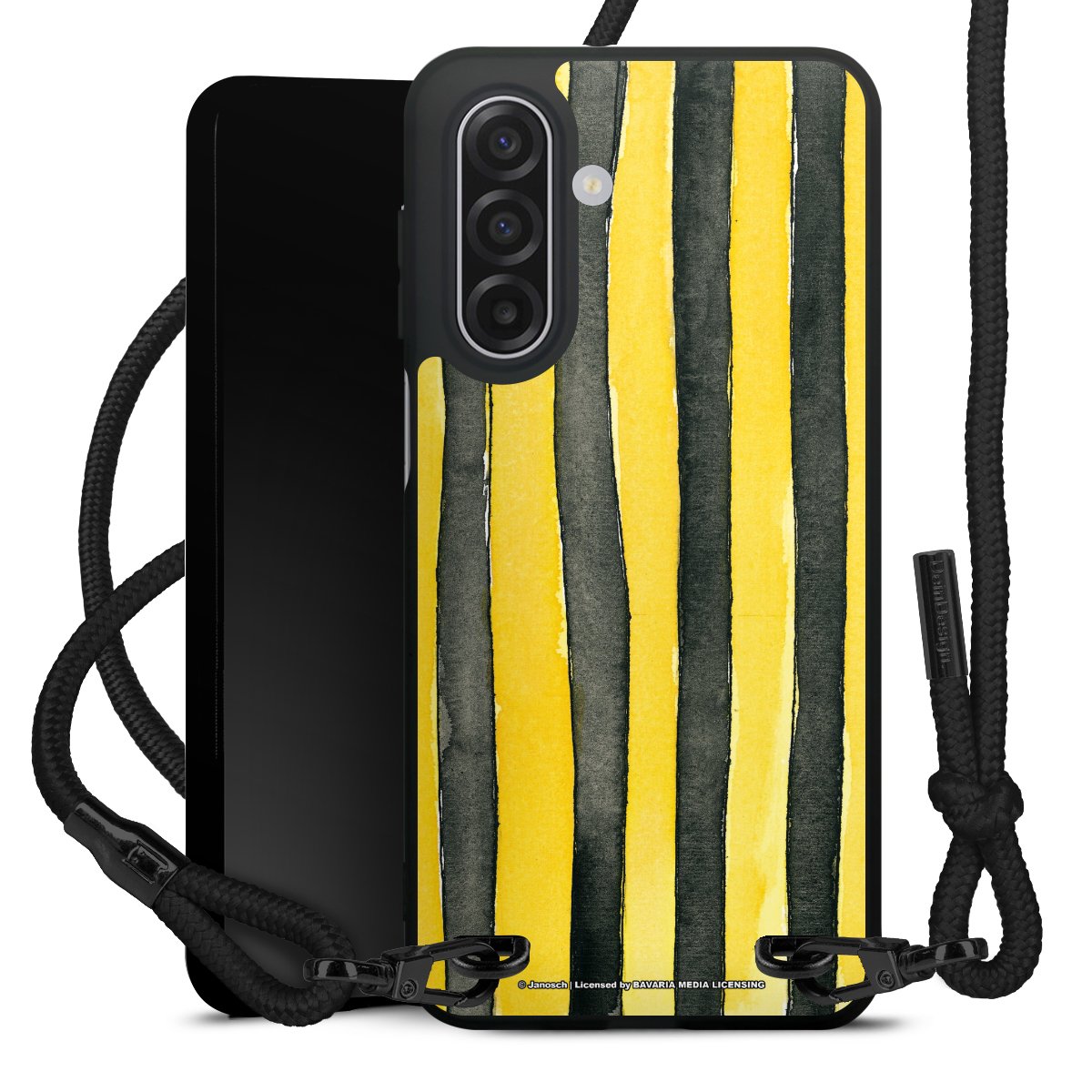 The matt black silicone case is made of flexible TPU (thermoplastic polyurethane) and offers robust protection. The durable, unbreakable material makes the cover flexible and dimensionally stable at the same time. The matte surface makes your design stand out more and is less susceptible to fingerprints and dirt. The stylish trend accessory fits comfortably in the hand and is perfectly complemented by the fabric (polyester) mobile phone strap. The braided fabric strap is approx. 1.70 metres long with a diameter of approx. 0.5 cm. Due to the special knotting technique, the length of the strap can be adjusted by simply pulling it, so that you can adapt it individually to your wishes. The practical case to wear around your neck is available with the fabric strap in black. As a little icing on the cake, we have provided the strap with a chic metal fastener in matt black. The strap is securely fastened to the case with loops made of high-quality genuine leather and press studs. The ends of the fabric strap are covered with metallic end caps and thus protected from fraying.