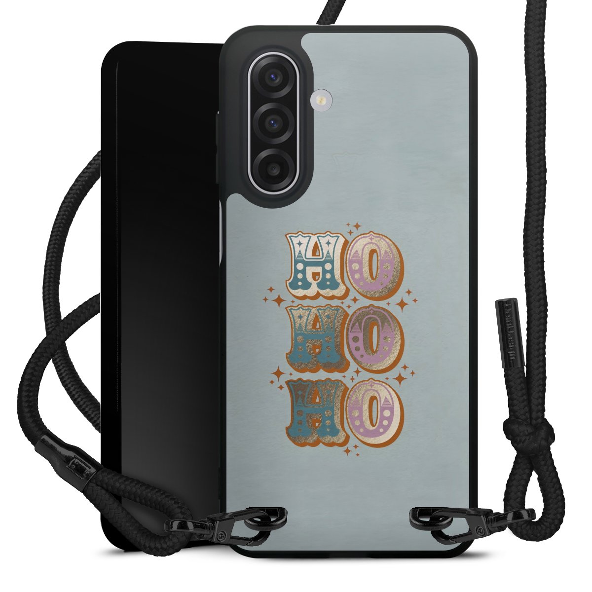The matt black silicone case is made of flexible TPU (thermoplastic polyurethane) and offers robust protection. The durable, unbreakable material makes the cover flexible and dimensionally stable at the same time. The matte surface makes your design stand out more and is less susceptible to fingerprints and dirt. The stylish trend accessory fits comfortably in the hand and is perfectly complemented by the fabric (polyester) mobile phone strap. The braided fabric strap is approx. 1.70 metres long with a diameter of approx. 0.5 cm. Due to the special knotting technique, the length of the strap can be adjusted by simply pulling it, so that you can adapt it individually to your wishes. The practical case to wear around your neck is available with the fabric strap in black. As a little icing on the cake, we have provided the strap with a chic metal fastener in matt black. The strap is securely fastened to the case with loops made of high-quality genuine leather and press studs. The ends of the fabric strap are covered with metallic end caps and thus protected from fraying.