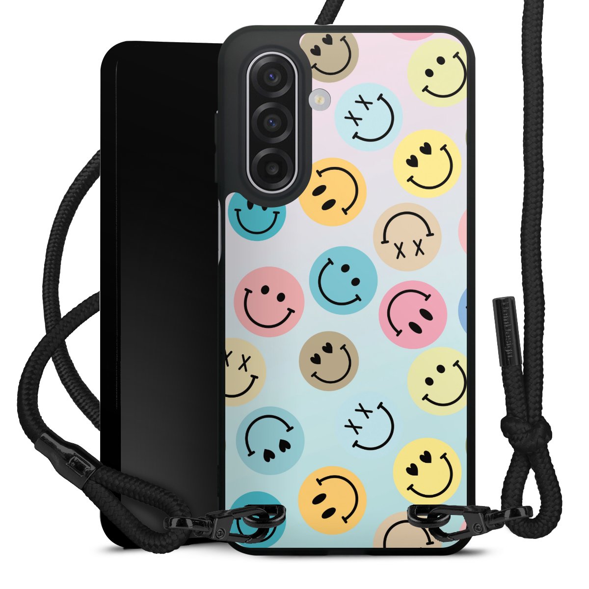 We use the solid direct print process for this phone case, which is why the print area only covers the back and the edge remains unprinted. The case to wear around your neck can be ordered unprinted, fully printed, or partially printed. For your design, either choose one of our exclusive shop motifs or get creative and create your own design, for example with photos and overlays. Design your own personal trend accessory and make an individual statement on the streets!