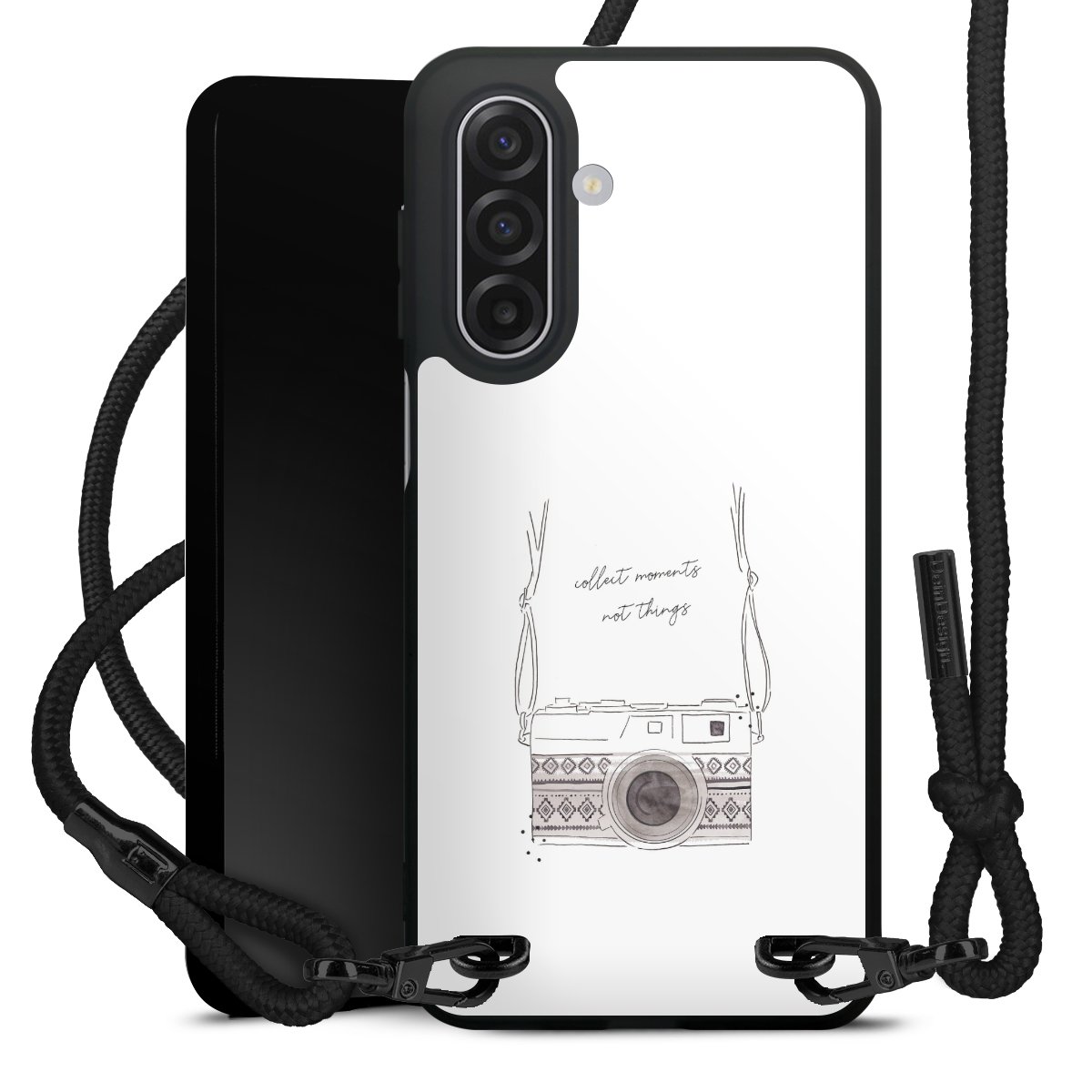 Pure Black: Phone case, fabric strap and metal details in stylish matt black.