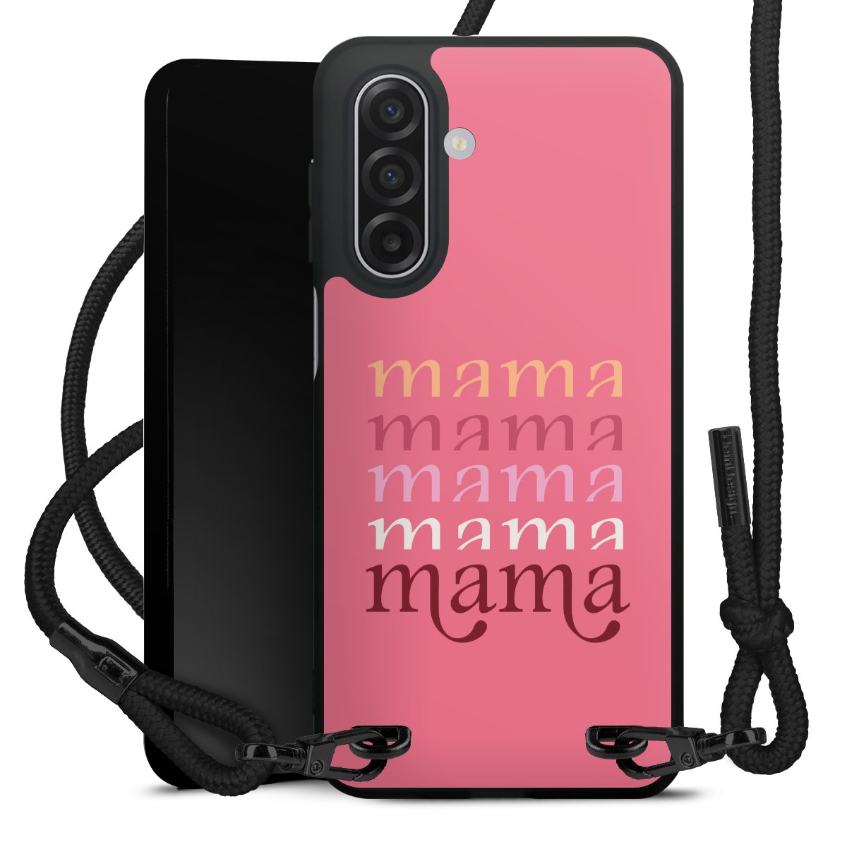 The matt black silicone case is made of flexible TPU (thermoplastic polyurethane) and offers robust protection. The durable, unbreakable material makes the cover flexible and dimensionally stable at the same time. The matte surface makes your design stand out more and is less susceptible to fingerprints and dirt. The stylish trend accessory fits comfortably in the hand and is perfectly complemented by the fabric (polyester) mobile phone strap. The braided fabric strap is approx. 1.70 metres long with a diameter of approx. 0.5 cm. Due to the special knotting technique, the length of the strap can be adjusted by simply pulling it, so that you can adapt it individually to your wishes. The practical case to wear around your neck is available with the fabric strap in black. As a little icing on the cake, we have provided the strap with a chic metal fastener in matt black. The strap is securely fastened to the case with loops made of high-quality genuine leather and press studs. The ends of the fabric strap are covered with metallic end caps and thus protected from fraying.