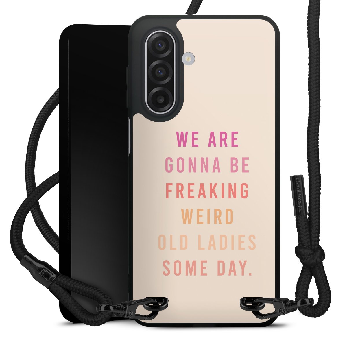 We use the solid direct print process for this phone case, which is why the print area only covers the back and the edge remains unprinted. The case to wear around your neck can be ordered unprinted, fully printed, or partially printed. For your design, either choose one of our exclusive shop motifs or get creative and create your own design, for example with photos and overlays. Design your own personal trend accessory and make an individual statement on the streets!
