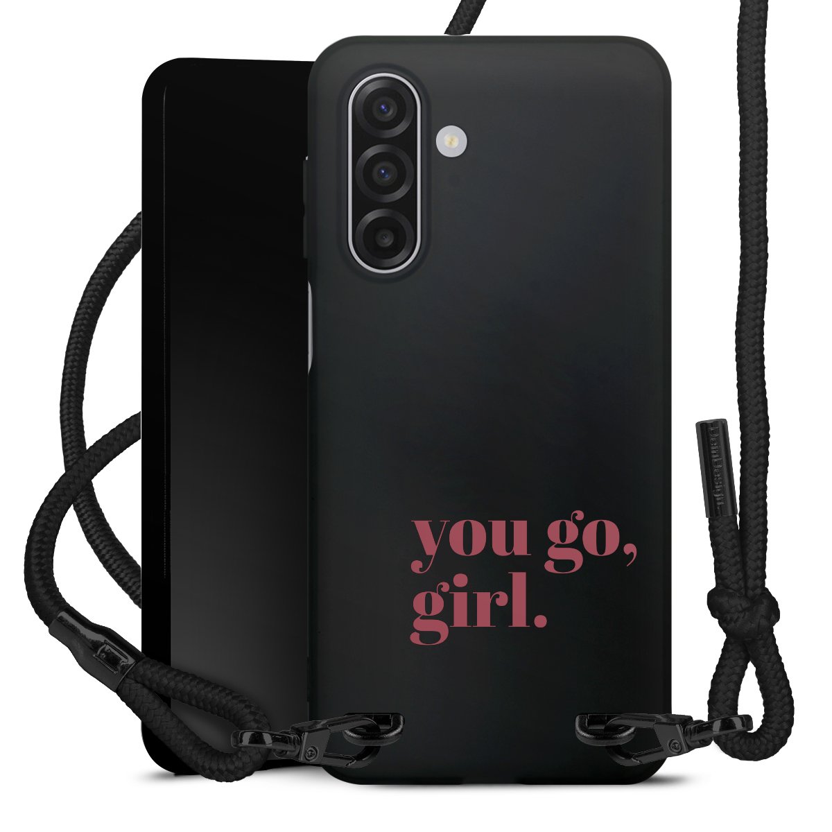 The matt black silicone case is made of flexible TPU (thermoplastic polyurethane) and offers robust protection. The durable, unbreakable material makes the cover flexible and dimensionally stable at the same time. The matte surface makes your design stand out more and is less susceptible to fingerprints and dirt. The stylish trend accessory fits comfortably in the hand and is perfectly complemented by the fabric (polyester) mobile phone strap. The braided fabric strap is approx. 1.70 metres long with a diameter of approx. 0.5 cm. Due to the special knotting technique, the length of the strap can be adjusted by simply pulling it, so that you can adapt it individually to your wishes. The practical case to wear around your neck is available with the fabric strap in black. As a little icing on the cake, we have provided the strap with a chic metal fastener in matt black. The strap is securely fastened to the case with loops made of high-quality genuine leather and press studs. The ends of the fabric strap are covered with metallic end caps and thus protected from fraying.