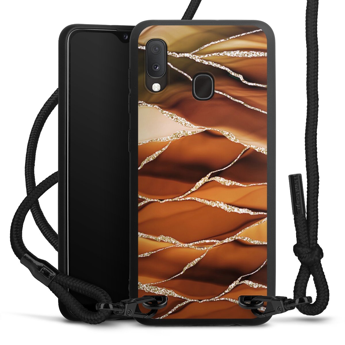 We use the solid direct print process for this phone case, which is why the print area only covers the back and the edge remains unprinted. The case to wear around your neck can be ordered unprinted, fully printed, or partially printed. For your design, either choose one of our exclusive shop motifs or get creative and create your own design, for example with photos and overlays. Design your own personal trend accessory and make an individual statement on the streets!