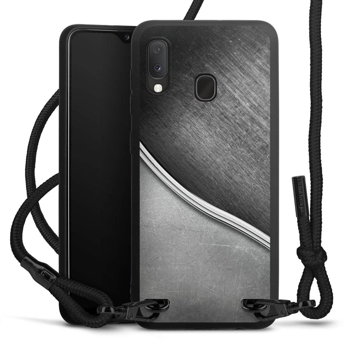 The matt black silicone case is made of flexible TPU (thermoplastic polyurethane) and offers robust protection. The durable, unbreakable material makes the cover flexible and dimensionally stable at the same time. The matte surface makes your design stand out more and is less susceptible to fingerprints and dirt. The stylish trend accessory fits comfortably in the hand and is perfectly complemented by the fabric (polyester) mobile phone strap. The braided fabric strap is approx. 1.70 metres long with a diameter of approx. 0.5 cm. Due to the special knotting technique, the length of the strap can be adjusted by simply pulling it, so that you can adapt it individually to your wishes. The practical case to wear around your neck is available with the fabric strap in black. As a little icing on the cake, we have provided the strap with a chic metal fastener in matt black. The strap is securely fastened to the case with loops made of high-quality genuine leather and press studs. The ends of the fabric strap are covered with metallic end caps and thus protected from fraying.