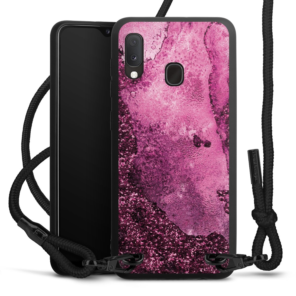 We use the solid direct print process for this phone case, which is why the print area only covers the back and the edge remains unprinted. The case to wear around your neck can be ordered unprinted, fully printed, or partially printed. For your design, either choose one of our exclusive shop motifs or get creative and create your own design, for example with photos and overlays. Design your own personal trend accessory and make an individual statement on the streets!