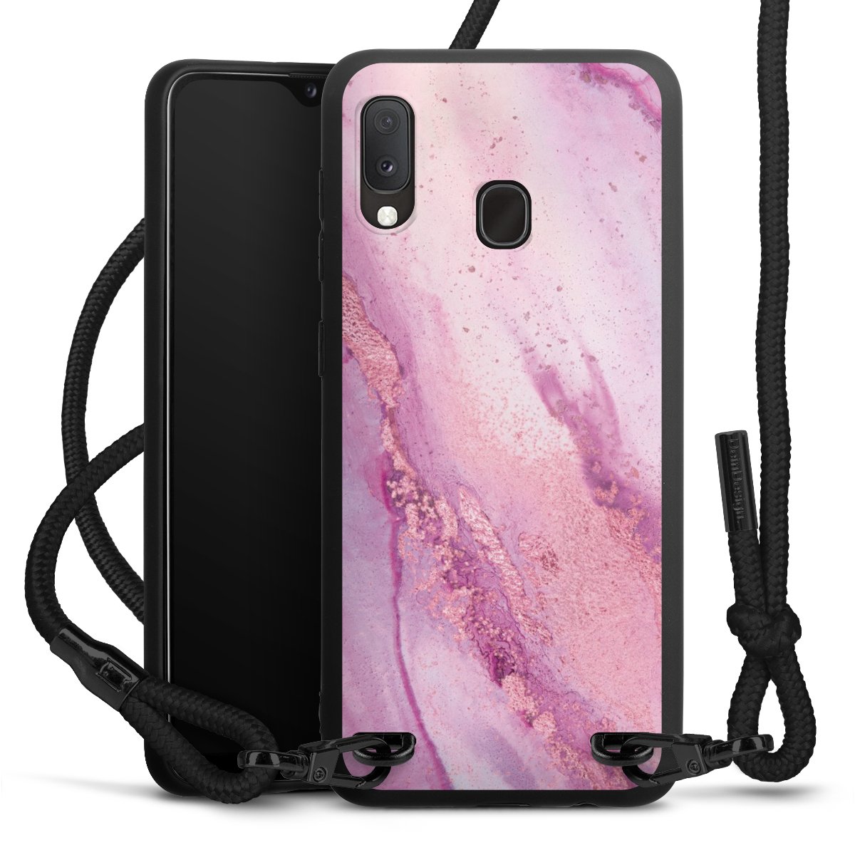 We use the solid direct print process for this phone case, which is why the print area only covers the back and the edge remains unprinted. The case to wear around your neck can be ordered unprinted, fully printed, or partially printed. For your design, either choose one of our exclusive shop motifs or get creative and create your own design, for example with photos and overlays. Design your own personal trend accessory and make an individual statement on the streets!