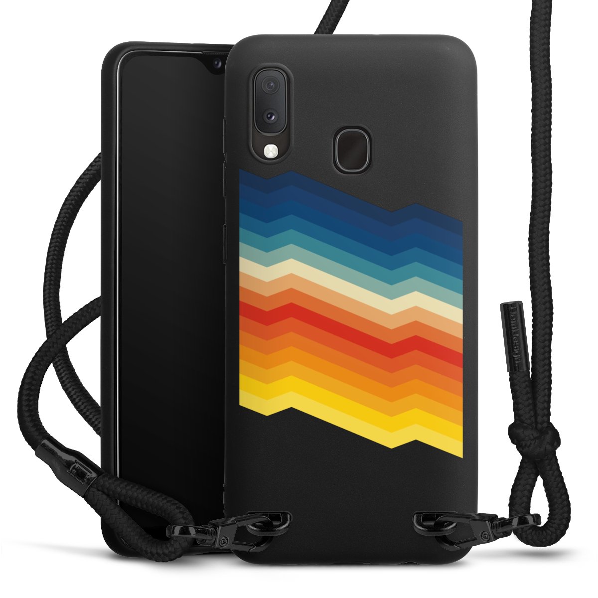 We use the solid direct print process for this phone case, which is why the print area only covers the back and the edge remains unprinted. The case to wear around your neck can be ordered unprinted, fully printed, or partially printed. For your design, either choose one of our exclusive shop motifs or get creative and create your own design, for example with photos and overlays. Design your own personal trend accessory and make an individual statement on the streets!