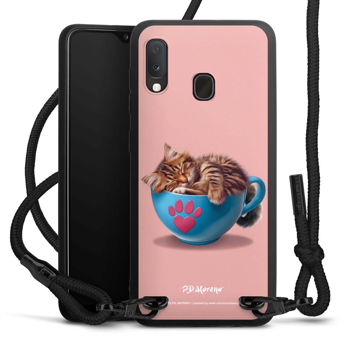 The matt black silicone case is made of flexible TPU (thermoplastic polyurethane) and offers robust protection. The durable, unbreakable material makes the cover flexible and dimensionally stable at the same time. The matte surface makes your design stand out more and is less susceptible to fingerprints and dirt. The stylish trend accessory fits comfortably in the hand and is perfectly complemented by the fabric (polyester) mobile phone strap. The braided fabric strap is approx. 1.70 metres long with a diameter of approx. 0.5 cm. Due to the special knotting technique, the length of the strap can be adjusted by simply pulling it, so that you can adapt it individually to your wishes. The practical case to wear around your neck is available with the fabric strap in black. As a little icing on the cake, we have provided the strap with a chic metal fastener in matt black. The strap is securely fastened to the case with loops made of high-quality genuine leather and press studs. The ends of the fabric strap are covered with metallic end caps and thus protected from fraying.