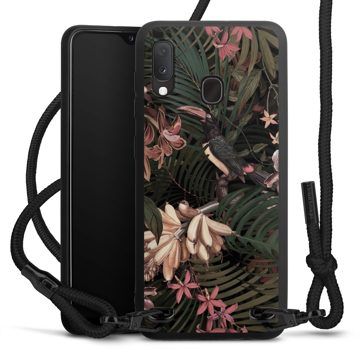 We use the solid direct print process for this phone case, which is why the print area only covers the back and the edge remains unprinted. The case to wear around your neck can be ordered unprinted, fully printed, or partially printed. For your design, either choose one of our exclusive shop motifs or get creative and create your own design, for example with photos and overlays. Design your own personal trend accessory and make an individual statement on the streets!