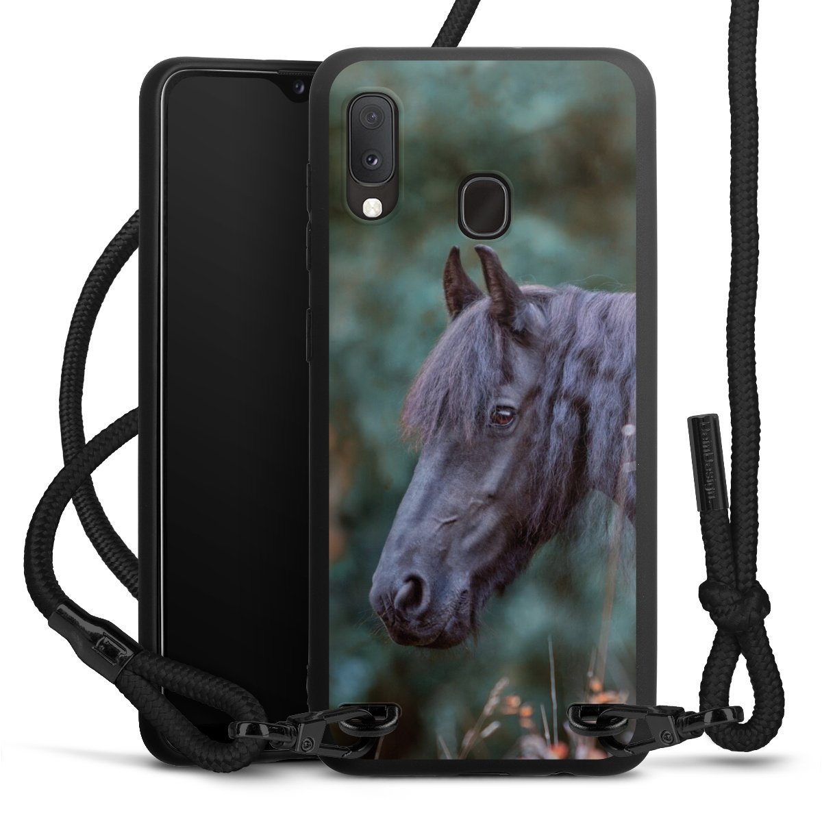 The matt black silicone case is made of flexible TPU (thermoplastic polyurethane) and offers robust protection. The durable, unbreakable material makes the cover flexible and dimensionally stable at the same time. The matte surface makes your design stand out more and is less susceptible to fingerprints and dirt. The stylish trend accessory fits comfortably in the hand and is perfectly complemented by the fabric (polyester) mobile phone strap. The braided fabric strap is approx. 1.70 metres long with a diameter of approx. 0.5 cm. Due to the special knotting technique, the length of the strap can be adjusted by simply pulling it, so that you can adapt it individually to your wishes. The practical case to wear around your neck is available with the fabric strap in black. As a little icing on the cake, we have provided the strap with a chic metal fastener in matt black. The strap is securely fastened to the case with loops made of high-quality genuine leather and press studs. The ends of the fabric strap are covered with metallic end caps and thus protected from fraying.