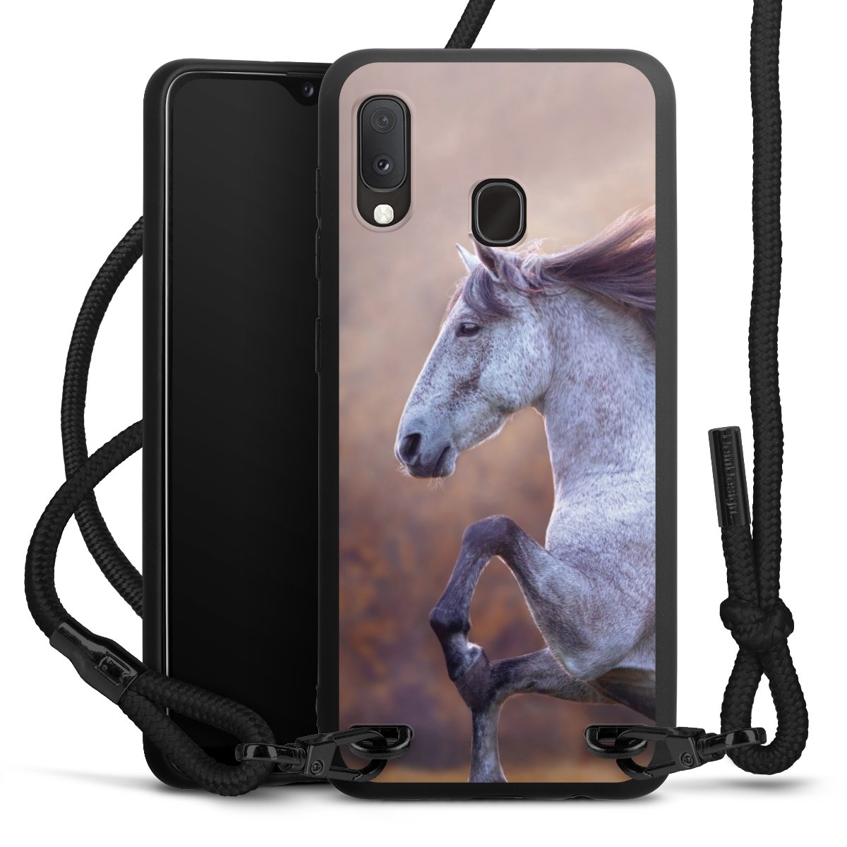 We use the solid direct print process for this phone case, which is why the print area only covers the back and the edge remains unprinted. The case to wear around your neck can be ordered unprinted, fully printed, or partially printed. For your design, either choose one of our exclusive shop motifs or get creative and create your own design, for example with photos and overlays. Design your own personal trend accessory and make an individual statement on the streets!