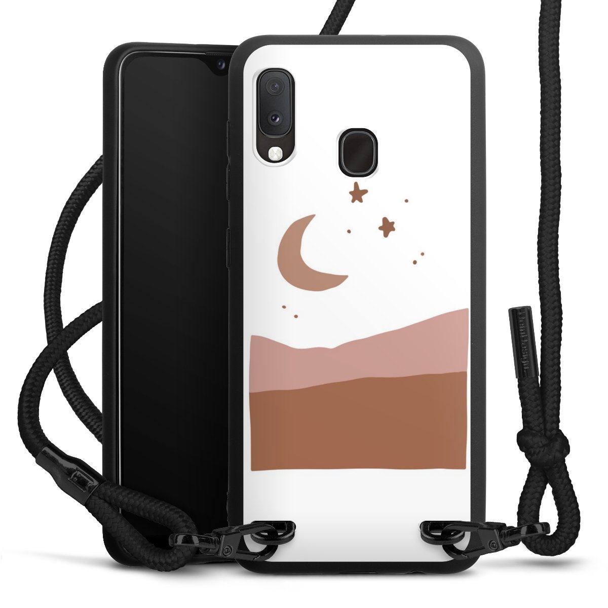 We use the solid direct print process for this phone case, which is why the print area only covers the back and the edge remains unprinted. The case to wear around your neck can be ordered unprinted, fully printed, or partially printed. For your design, either choose one of our exclusive shop motifs or get creative and create your own design, for example with photos and overlays. Design your own personal trend accessory and make an individual statement on the streets!