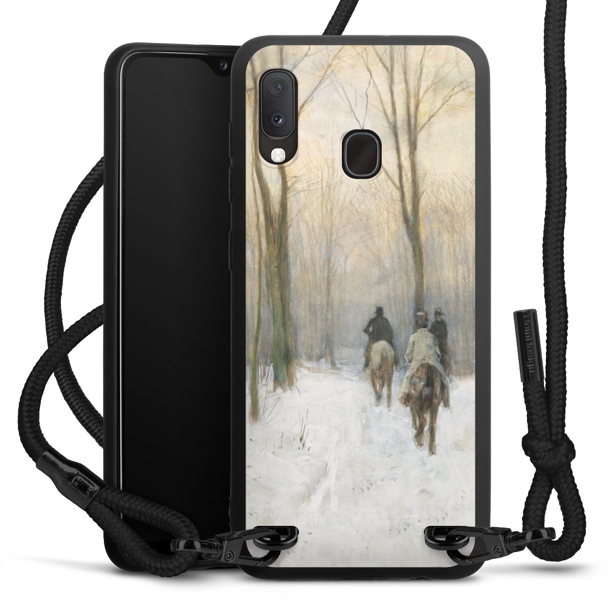 The matt black silicone case is made of flexible TPU (thermoplastic polyurethane) and offers robust protection. The durable, unbreakable material makes the cover flexible and dimensionally stable at the same time. The matte surface makes your design stand out more and is less susceptible to fingerprints and dirt. The stylish trend accessory fits comfortably in the hand and is perfectly complemented by the fabric (polyester) mobile phone strap. The braided fabric strap is approx. 1.70 metres long with a diameter of approx. 0.5 cm. Due to the special knotting technique, the length of the strap can be adjusted by simply pulling it, so that you can adapt it individually to your wishes. The practical case to wear around your neck is available with the fabric strap in black. As a little icing on the cake, we have provided the strap with a chic metal fastener in matt black. The strap is securely fastened to the case with loops made of high-quality genuine leather and press studs. The ends of the fabric strap are covered with metallic end caps and thus protected from fraying.