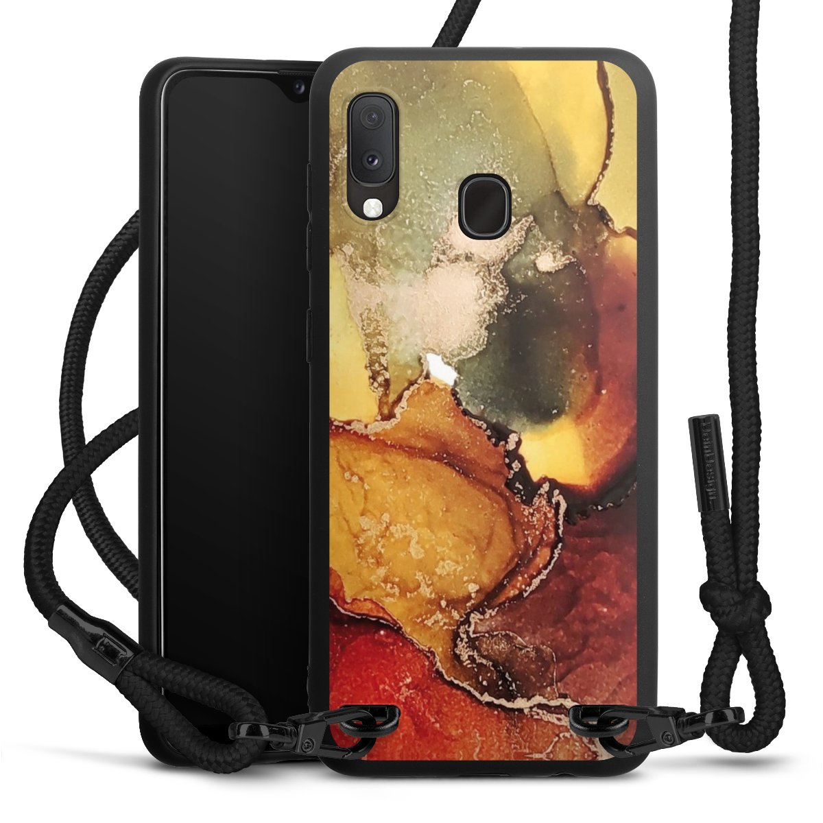 We use the solid direct print process for this phone case, which is why the print area only covers the back and the edge remains unprinted. The case to wear around your neck can be ordered unprinted, fully printed, or partially printed. For your design, either choose one of our exclusive shop motifs or get creative and create your own design, for example with photos and overlays. Design your own personal trend accessory and make an individual statement on the streets!