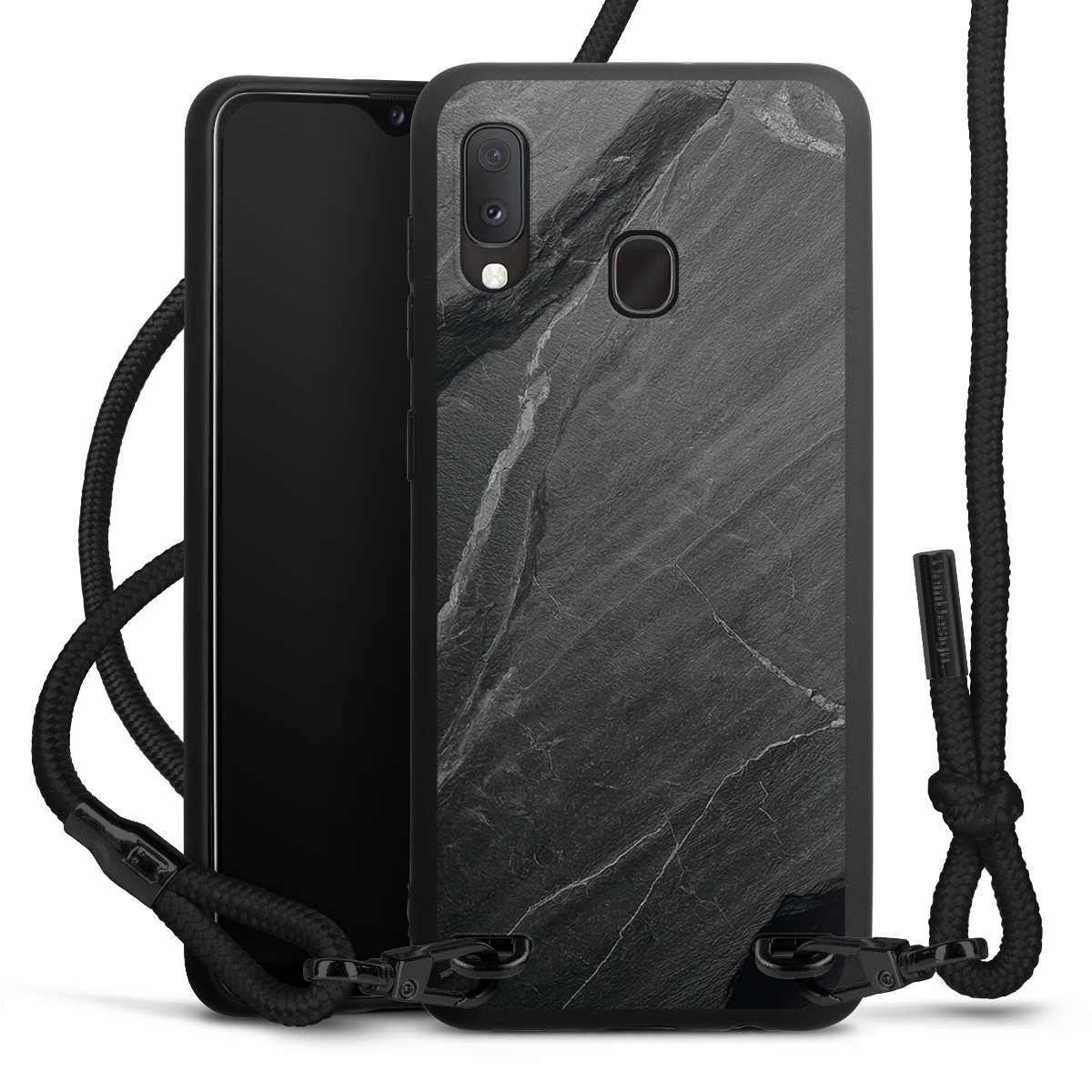 The matt black silicone case is made of flexible TPU (thermoplastic polyurethane) and offers robust protection. The durable, unbreakable material makes the cover flexible and dimensionally stable at the same time. The matte surface makes your design stand out more and is less susceptible to fingerprints and dirt. The stylish trend accessory fits comfortably in the hand and is perfectly complemented by the fabric (polyester) mobile phone strap. The braided fabric strap is approx. 1.70 metres long with a diameter of approx. 0.5 cm. Due to the special knotting technique, the length of the strap can be adjusted by simply pulling it, so that you can adapt it individually to your wishes. The practical case to wear around your neck is available with the fabric strap in black. As a little icing on the cake, we have provided the strap with a chic metal fastener in matt black. The strap is securely fastened to the case with loops made of high-quality genuine leather and press studs. The ends of the fabric strap are covered with metallic end caps and thus protected from fraying.
