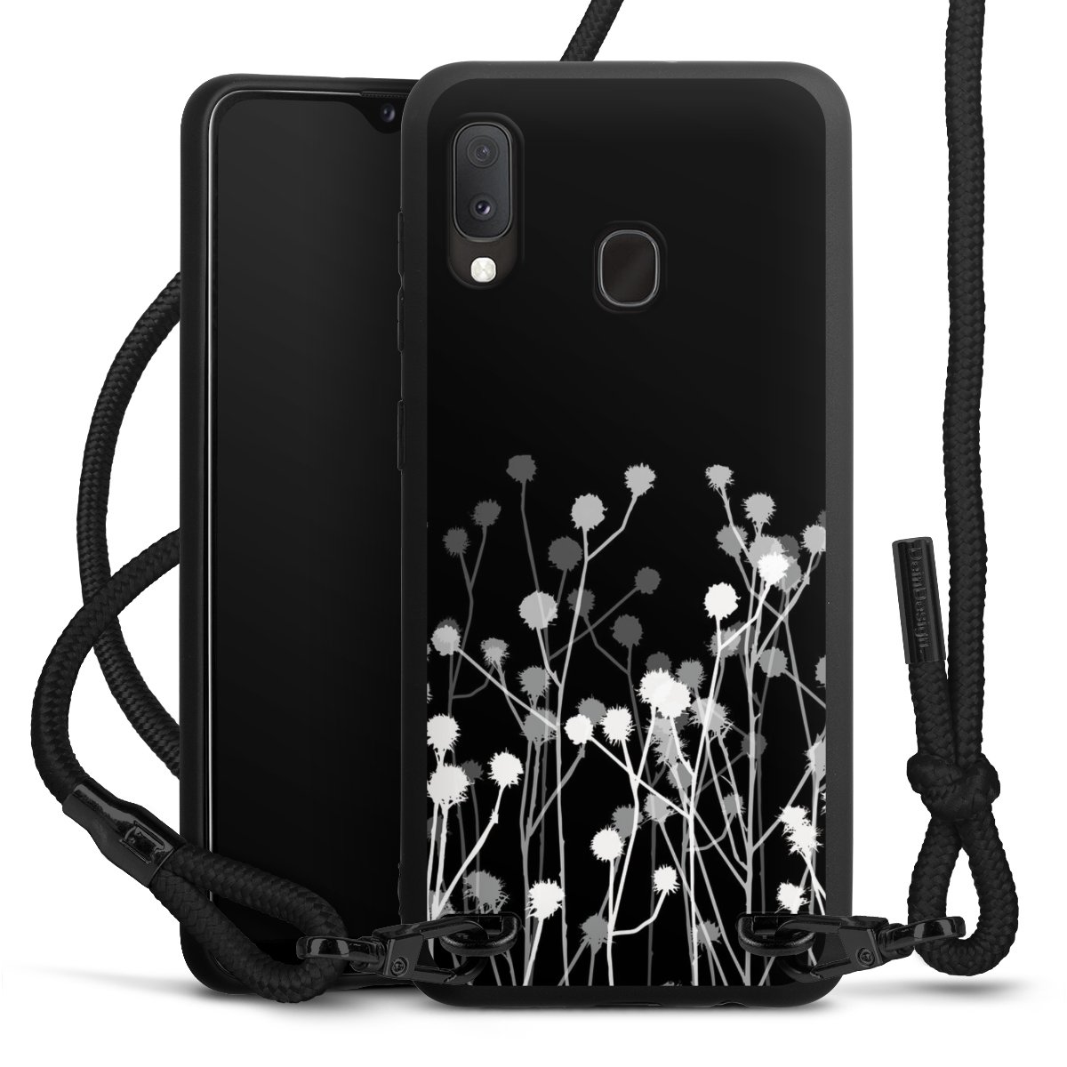 The matt black silicone case is made of flexible TPU (thermoplastic polyurethane) and offers robust protection. The durable, unbreakable material makes the cover flexible and dimensionally stable at the same time. The matte surface makes your design stand out more and is less susceptible to fingerprints and dirt. The stylish trend accessory fits comfortably in the hand and is perfectly complemented by the fabric (polyester) mobile phone strap. The braided fabric strap is approx. 1.70 metres long with a diameter of approx. 0.5 cm. Due to the special knotting technique, the length of the strap can be adjusted by simply pulling it, so that you can adapt it individually to your wishes. The practical case to wear around your neck is available with the fabric strap in black. As a little icing on the cake, we have provided the strap with a chic metal fastener in matt black. The strap is securely fastened to the case with loops made of high-quality genuine leather and press studs. The ends of the fabric strap are covered with metallic end caps and thus protected from fraying.