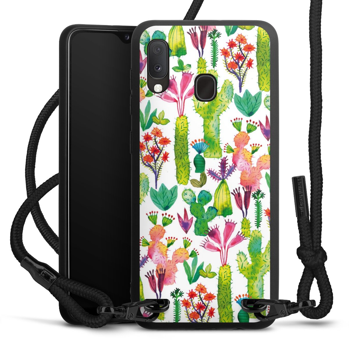 We use the solid direct print process for this phone case, which is why the print area only covers the back and the edge remains unprinted. The case to wear around your neck can be ordered unprinted, fully printed, or partially printed. For your design, either choose one of our exclusive shop motifs or get creative and create your own design, for example with photos and overlays. Design your own personal trend accessory and make an individual statement on the streets!
